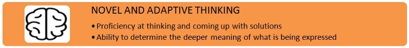 Novel and Adaptive Thinking: Jobs of the future would require the ability of being able to adapt as per the situation demands. This ability means, say in context of discovering a new drug, creation of a new synthesis route from the existing bio-chemical reagents. This is what is termed as novel and adaptive thinking. This ability again creates employability of humans in the higher order jobs.