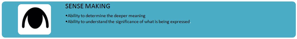 Sense Making: With the advances in technology, a lot of routine and mundane manufacturing and service job could be taken over by smart machines. However, there would be higher order jobs which require thinking skills, which could not be translated to a machine code. Such skills are generally called as ‘sense-making skills’. These are the abilities that human develop to create unique insights, that are critical to decision making tasks.