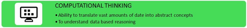 Computational Thinking: With the advent of Big Data and Analytics, the next generation of human workers must develop computational thinking ability. This ability implies how to make sense of the huge amount of data and its analysis to bring out models that guide the decision making process.